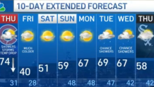 Thursday starts out dry and warm, Roman said, with a high of 74 degrees. Temperatures will quickly fall and thunderstorms will “rapidly develop” by afternoon.