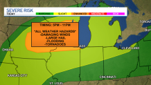 In addition to the tornado risk, downpours, flooding, damaging winds and two-inch hail could be possible, the NWS said, including Milwaukee and parts near the Illinois-Wisconsin border.