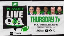 Meet the bus at the final stop of the day, P.J. Whelihan’s, where you can catch our Eagles Playoff Live Q&A with experts Michael Barkann, John Clark, Barrett Brooks, Reuben Frank and Dave Zangaro.