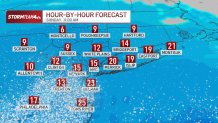 See hourly radar projections and more on timing below. Follow our winter storm blog for live updates.