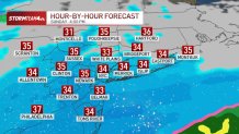 A mix of rain and snow starts Sunday morning. Temperatures drop late Sunday afternoon and snow starts to stick Sunday evening. Snowfall rates up to 3 inches an hour and increasing winds will greatly reduce visibility and likely reach blizzard criteria (especially in Suffolk County) into Monday morning.