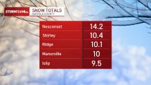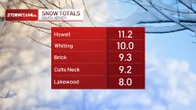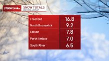Here’s a look at snow totals from around New York, New Jersey, and Connecticut (updated as of 4:45 a.m. Monday.):