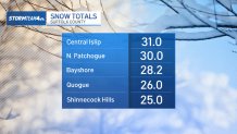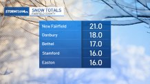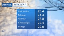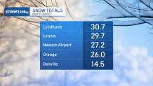Here’s a look at snow totals from around New York, New Jersey, and Connecticut (updated as of 3 p.m. Monday):