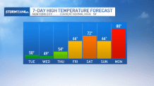 Wednesday will be the coldest day of the week in the area, with temperatures trending up as we head into the weekend. Right now, the weekend is looking spectacular, and above-normal temperatures are likely through next week.