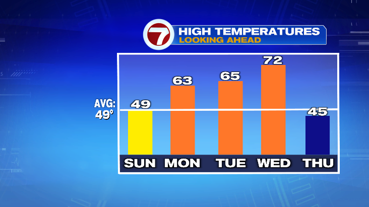 We’ll start with highs in the mid to upper 40s tomorrow– near-average, if not right on the money for this time of year. It’ll still be breezy but mostly to partly sunny. Overall? Not a bad day to get outside.