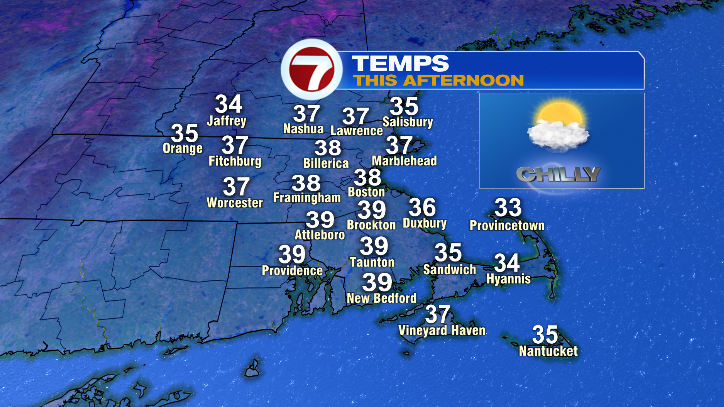 Friday (the Sox opening day at Fenway) is looking unfortunately even cooler. It’ll be right around 40 with a breeze and showers– a very raw-feeling day.