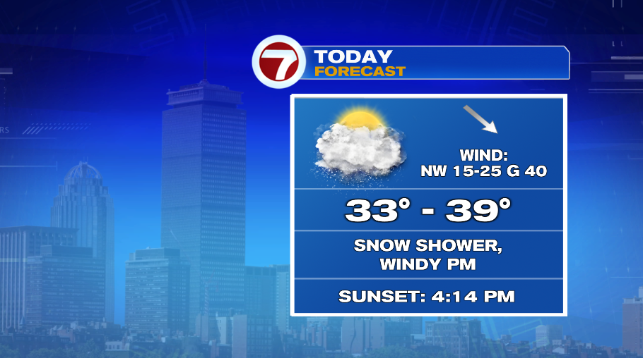 Like I said, this morning isn’t bad, and the morning today won’t be that bad with temperatures in the 30s. But this afternoon we’re in for some changes. The wind will ramp up as the bitter cold air starts to move in and take over. This afternoon winds could gust as high as 40 mph. As that cold, arctic air rushes in, it will also touch off a few snow showers this afternoon. They’ll be pretty isolated but you may get caught under a brief little snow shower today.