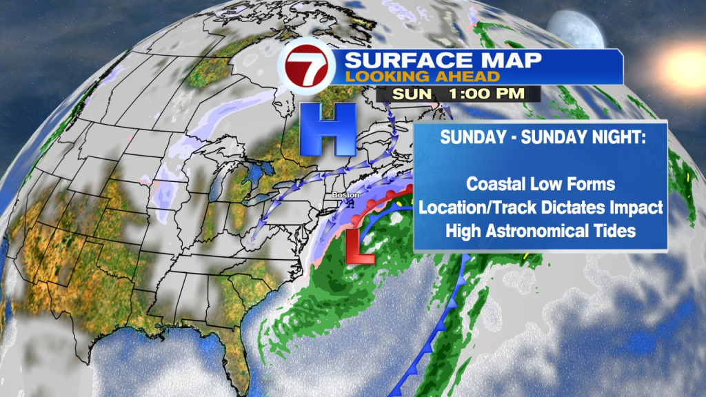 This go around, there will be a tremendous pressure difference between the high to our north and low to our south. That drive strong winds, especially across the Cape and Islands. Tides run astronomically high too, that’s why there’d be the increased risk of coastal flooding. The closer the storm, the higher the wind/flood risk at the coast.