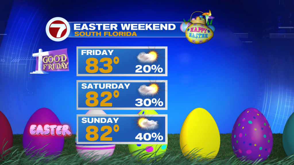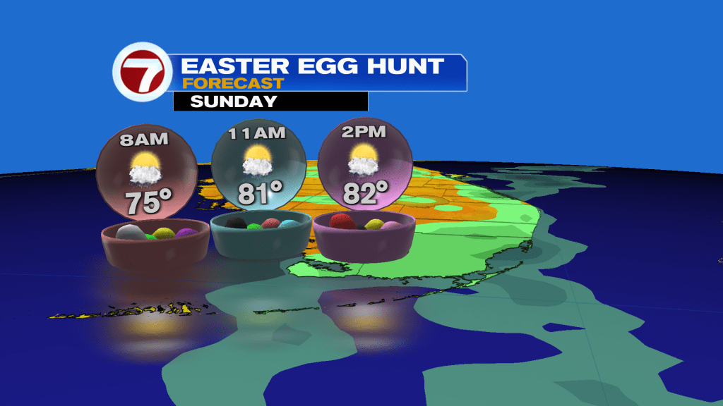 That means for Easter egg hunts planned for Sunday, some showers will pass through some locations in South Florida at times so your egg hunt may need to be delayed.