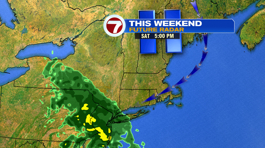 High pressure is doing the most today, setting up an essential road block for any sort of rain to make it into New England. Not too far away, Connecticut was waking up to clouds and rain this morning. Not for us, with plenty of sunshine out there this morning. That same set up will keep rain to our south this weekend.