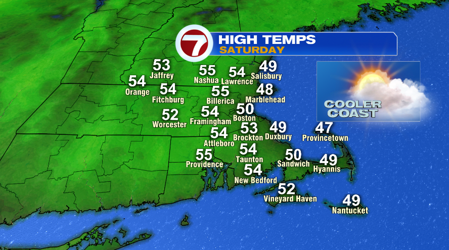 Temperatures were pretty nice yesterday, though the breeze definitely made it a little harder to be outside enjoying those warmer temperatures. Today is another nice day, ending the week on a weather high note. Temperatures today will be cooler than yesterday — yesterday we had highs in the middle 60s, today will be in the 50s. That said, the sunshine and lack of wind will make for another great afternoon. The only caveat here is while the breeze was maybe a little annoying yesterday, it was able to fend off the sea breeze. That won’t be the case today. So for those on the coast, it will be a bit chilly this afternoon.