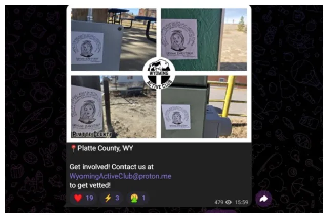 Active Club members also discuss current affairs. Posts by Wyoming Active Club show posters of Iryna Zarutska, the 23-year-old Ukrainian refugee whose death caused a national outcry, affixed to poles and other outdoor locations.