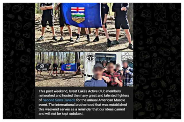 There are also signs the U.S. Active Clubs are collaborating with extremist groups in Canada. Second Sons Canada, an Active Club group, has met with both the Lone Star Active Club in Dallas and the Great Lakes Active Clubs ahead of their participation in the American Muscle event, posts and photos on Telegram revealed.