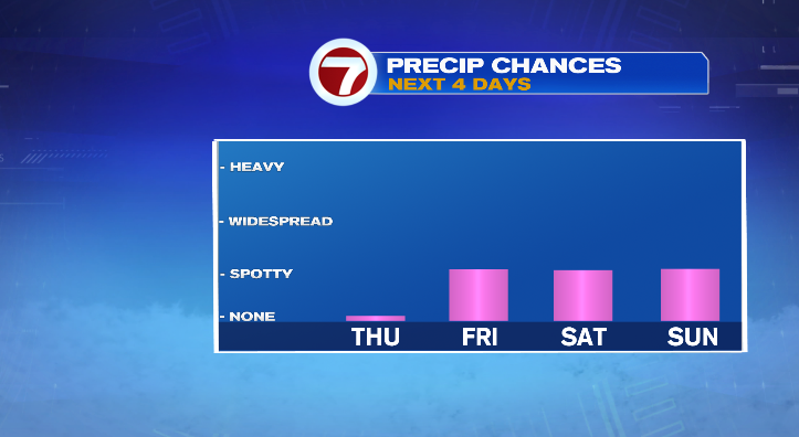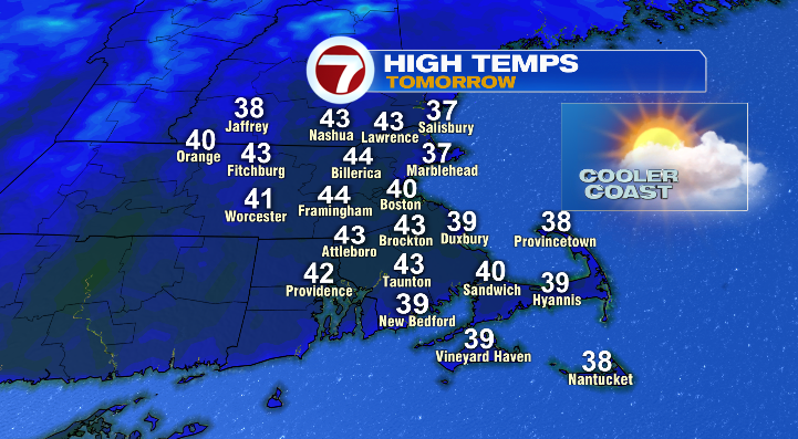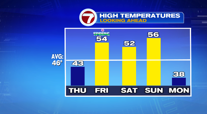 The good news if you don’t like the chill is that those bitter-cold temps are one-and-done. We’ll stay about 10 degrees below average overnight (lows between roughly 19 and 25 degrees). However, temperatures climb a few degrees on Thursday. We’ll be in the low to mid 40s inland, and the upper 30s for the coast. We’ll be mostly cloudy as well, and not as breezy.