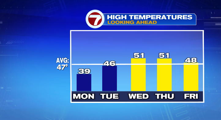 Monday will also have a much cooler feel, with highs only in the mid to upper 30s.