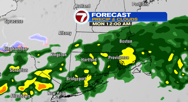 Between showers and some heavy rain today, and the more widespread round of rain we’ll see overnight into Monday morning, we’re looking at 0.5-1.5″ or so, location-dependent. The heaviest rainfall looks like it’ll be along and south of the Mass Pike.
