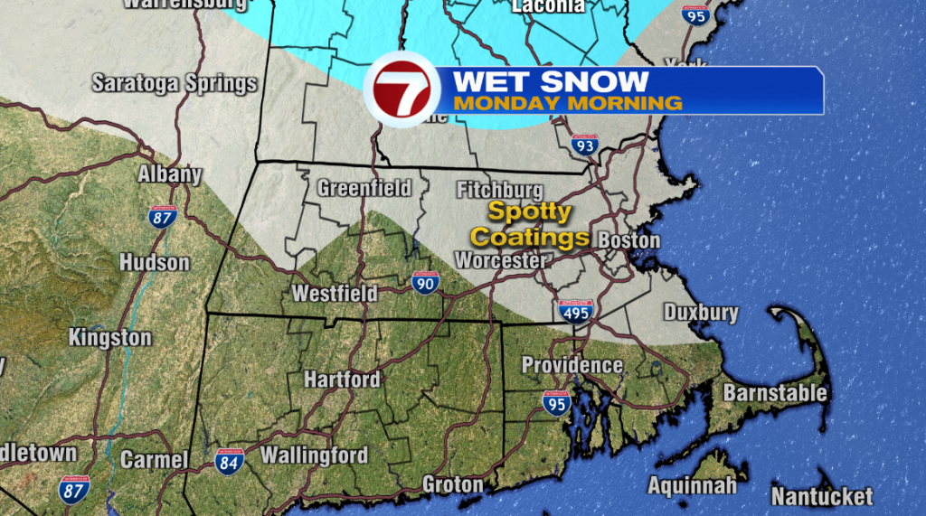 This storm ends will a little “slice” of snow early Monday morning. This could lead to some spotty coatings, even an isolated inch, especially for areas inside of 495. By no means will this be a big snow event. More so, it’ll be a nuisance for the morning commute, and could lead to a slow drive to work, or wherever you need to go early to mid-morning on Monday.