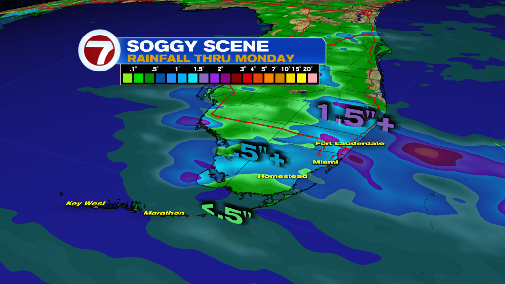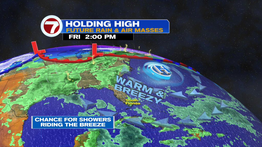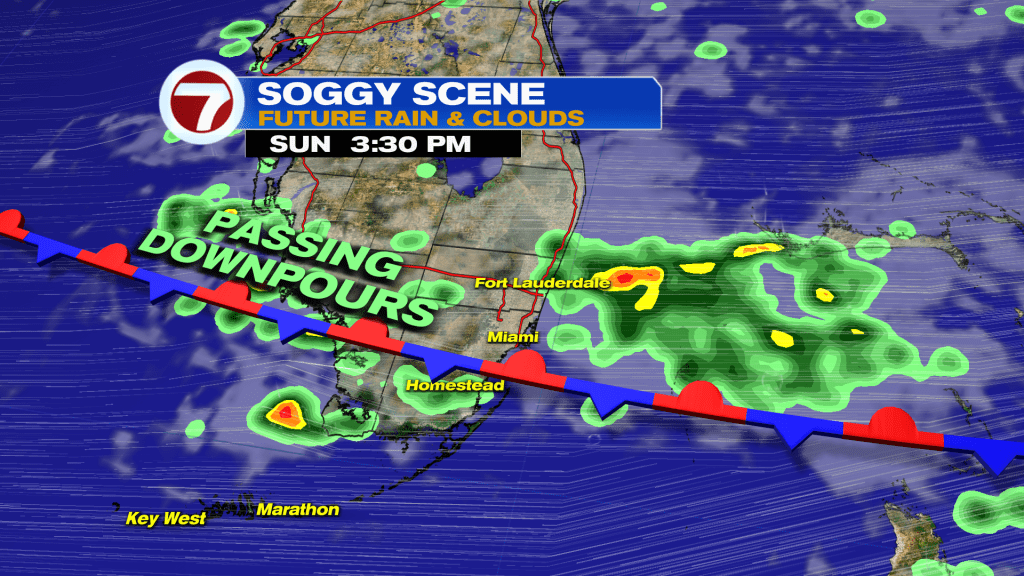 For Sunday, the highest chances for rain will be across Broward down through the Miami area while for tomorrow, everyone has an equal opportunity for rain as that front fizzles across the area and leaves its moisture behind.