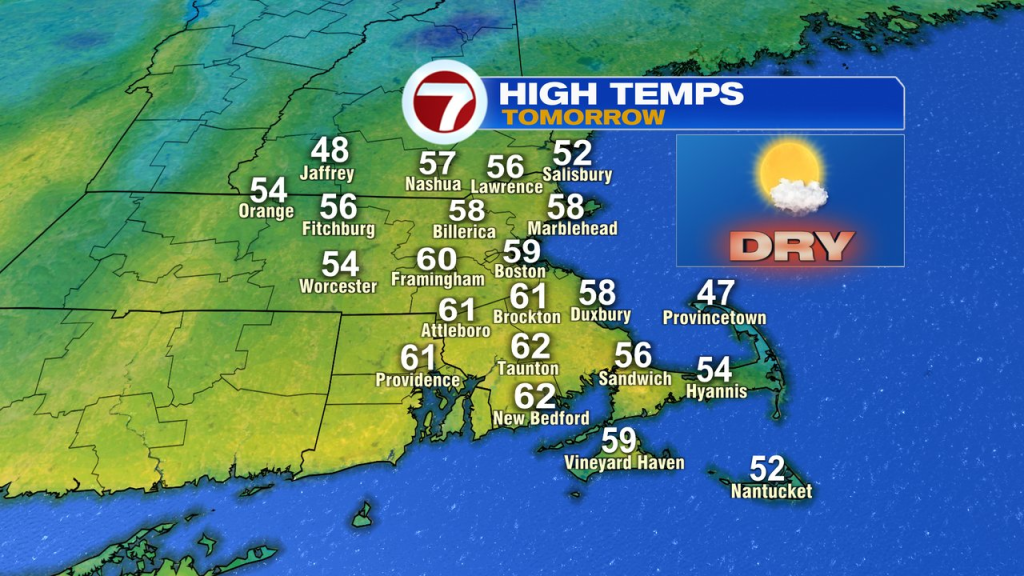 A bit of a leftover chill is in the air early this morning, but temps are set to bounce back and bounce back quickly today. Under a mostly sunny sky, temps rise up into the mid 60s to low 70s for most. Along the south coast, it’ll be cooler, 50-55 as a busy southwesterly wind develops.