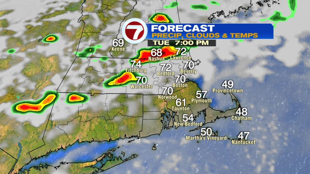 Tomorrow and Thursday will feature more warmth air. The high temp map for tomorrow is a bit tricky, as numbers may get stuck in the 50s/60s near the coast, especially across Northeast Mass. Farther inland, it’ll be warm again, 70s to low 80s. A few scattered showers and storms are possible, but much of the time is rain-free.
