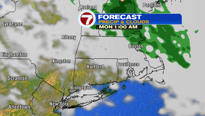 We’ll start with a warm front that moves in long after sunset tonight. That’ll throw a few showers our way around midnight, particularly for the North Shore. Showers will be short-lived though, and we’ll be dry by the morning commute Monday.