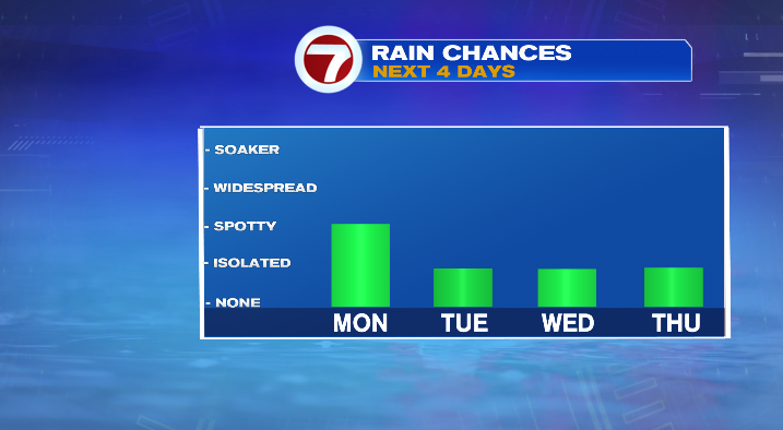 We’ll see rounds of showers throughout the week– Tuesday evening, Wednesday evening, and early Thursday morning, we could see a few showers. But, this week is by no means a washout.