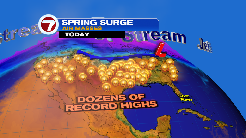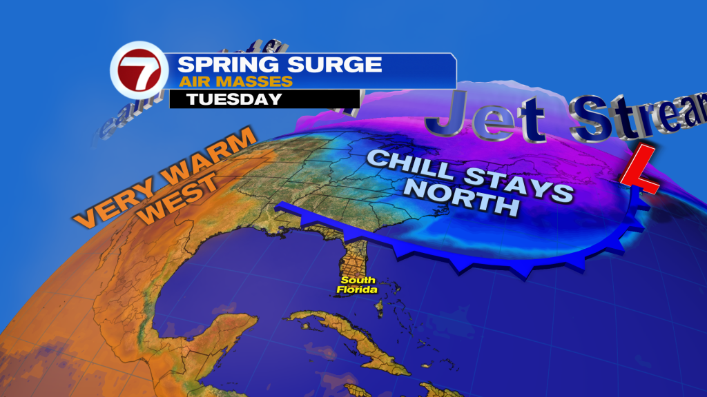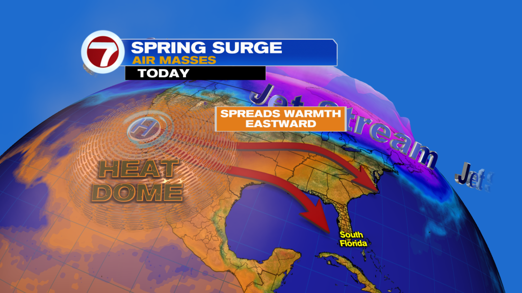 This distant dome will help bring in warmer temperatures to South Florida for our first week of spring with highs several degrees above average while the cold air stays to our north.