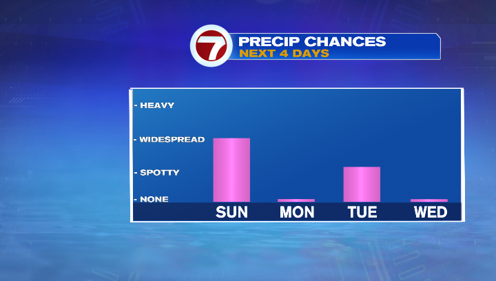 You’ll want the umbrella if you’re heading to a later lunch or early Easter dinner. Showers will taper off throughout the evening, though we’ll stay mostly cloudy afterward. Temperatures will be in the upper 50s and low 60s.