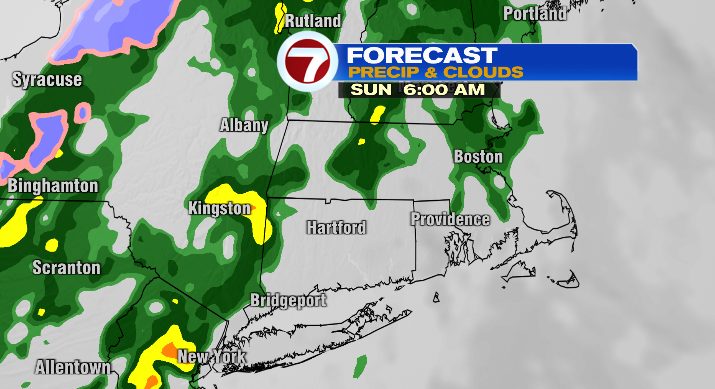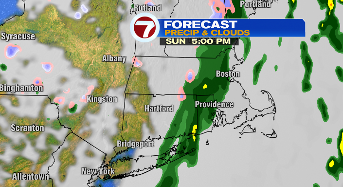 On the flip side, Sunday looks soggy. A cold front moving through New England will bring showers and some pockets of heavy rain as well. The first showers will be in the morning, with rain getting steadier and heavier midday.