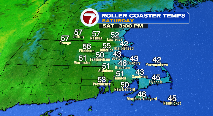 We’ve had a much more raw feel across Massachusetts today, between the cooling temperatures and the showers. That doesn’t change too much as we head into the weekend. Don’t get me wrong– there will be dry time to get outside, but it won’t be the brightest, sunniest stretch.
