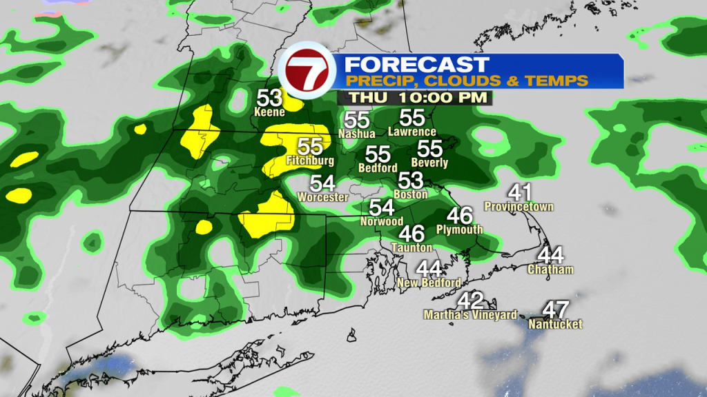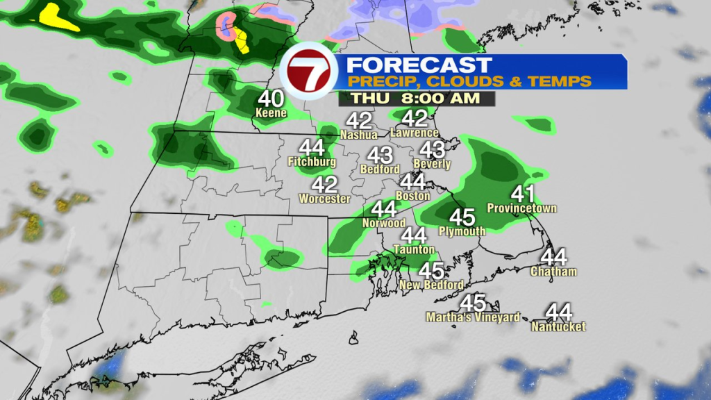 A few scattered showers move in tomorrow night into Thursday morning. Midday Thursday, through Thursday afternoon, we’ll dry out with partial sun. That’ll launch temps into the lower 60s. Thursday evening into Friday morning, another around of showers moves on in.