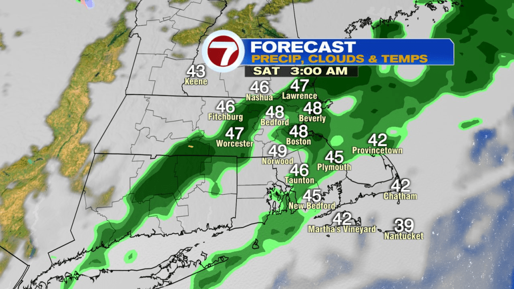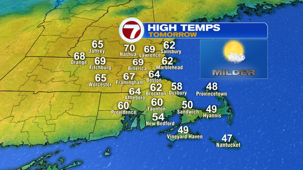 Temps tonight slip back into the 30s, then bound back into the 60s to near 70 tomorrow. Although, with a southerly breeze, it’ll be much cooler near the south coast.