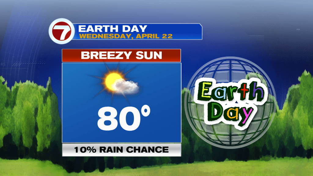 Notice (above) the areas in yellow and orange. That’s where we have the strongest pressure difference (hence the biggest winds). This is a temporary situation, and we’ve already reached the peak of the windy pattern. Having said that, it’ll take time and patience for the flow to relax in the coming days. That means we’re in for breezy weather on Earth Day, Wednesday.