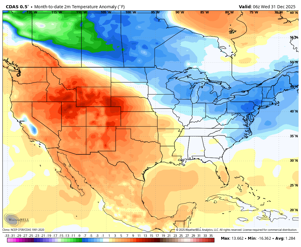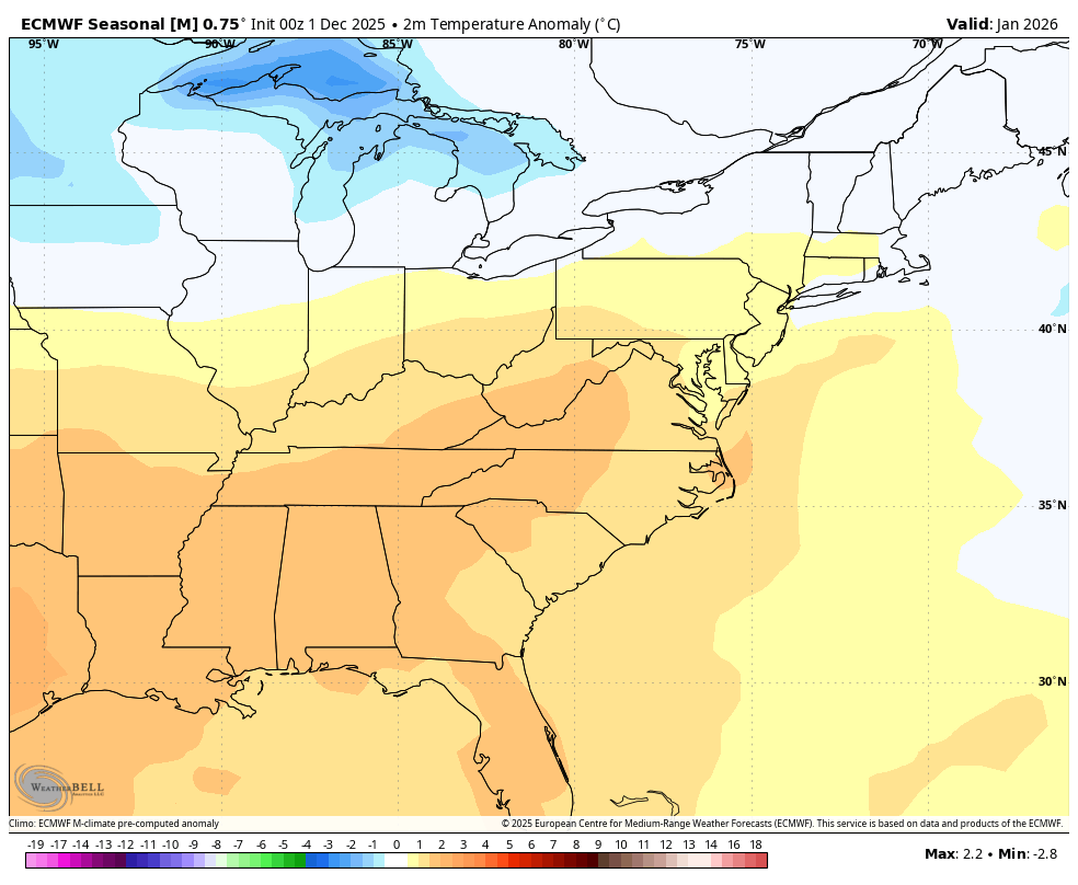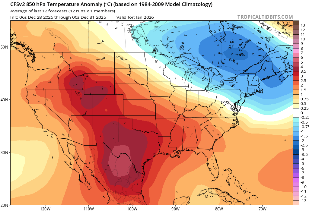 I do think it’s more likely than not that after our cold December and a cold start to the month there are probably at least a few days where temperatures do go above average, perhaps late in the first or into the second week of the month. Sometimes when you oscillate between those cold weeks into a break in the cold, a snow event often occurs. Keep an eye on the end of the first week and the start of the second for this possibility.